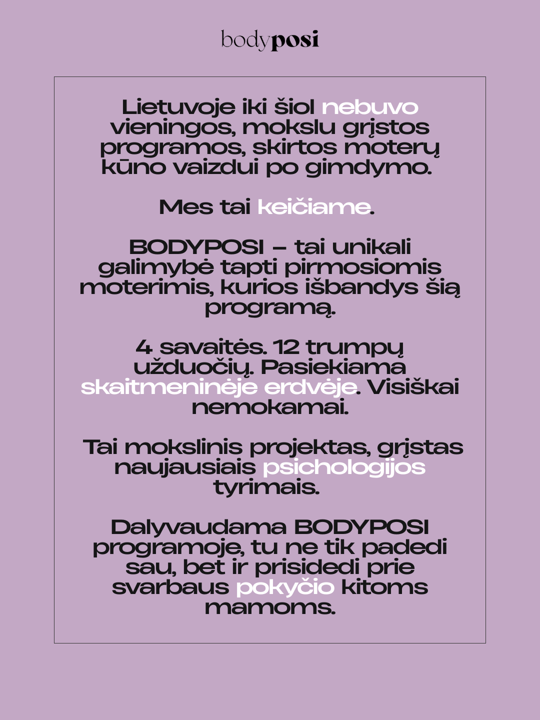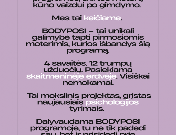Programa įgyvendinama nuotoliniu būdu, todėl ją galima atlikti iš bet kurios Lietuvos vietos, pasirinktu metu. Kviečiame prisijungti – tai galimybė skirti laiko sau, geriau suprasti savo kūno pokyčius ir prisidėti prie mokslo pažangos.